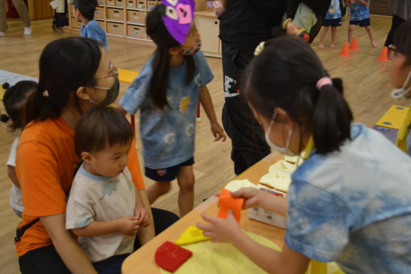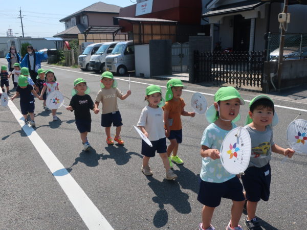 ばらぐみ(4歳児)さくらぐみ(3歳児)のお友達も「わっしょい!」と声を出しながらみこし練りを楽しんでくれていました。
