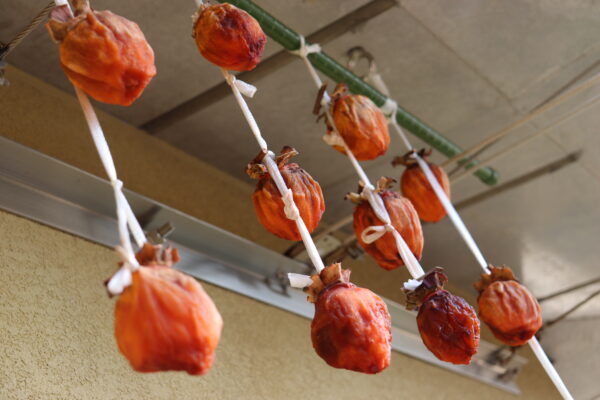 風通しの良い軒下に吊るした柿!