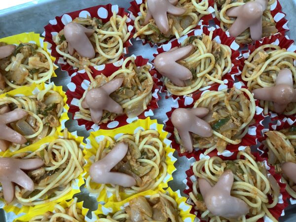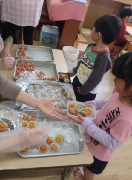 今月2回目のお楽しみメニューになります。3月にはリクエスト献立を入れていて、その中にバイキングがあったので『年長さんありがとうバイキング』をしました。
