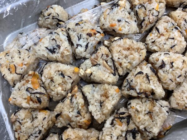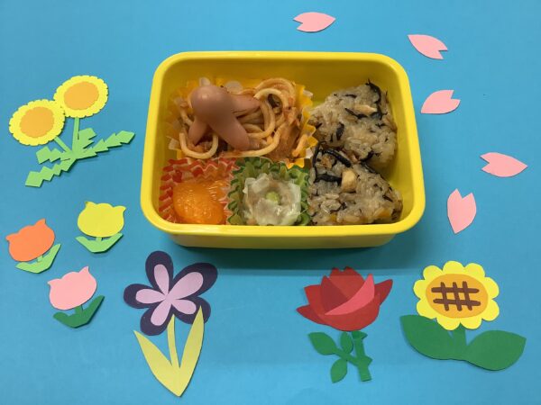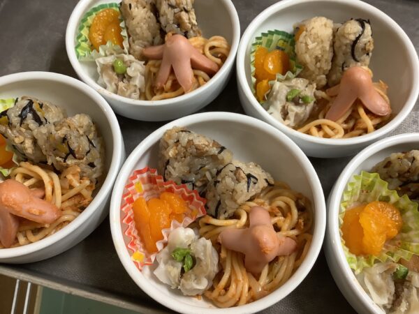 おにぎり2個、おかず3種類、デザート1種類をお弁当箱ににつめてもらいました。