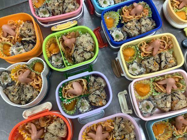 いろんなお弁当箱に、思い思いに詰めてくれました。