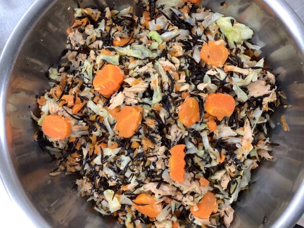 ひじきサラダの人参を「南瓜」と「コウモリ」に